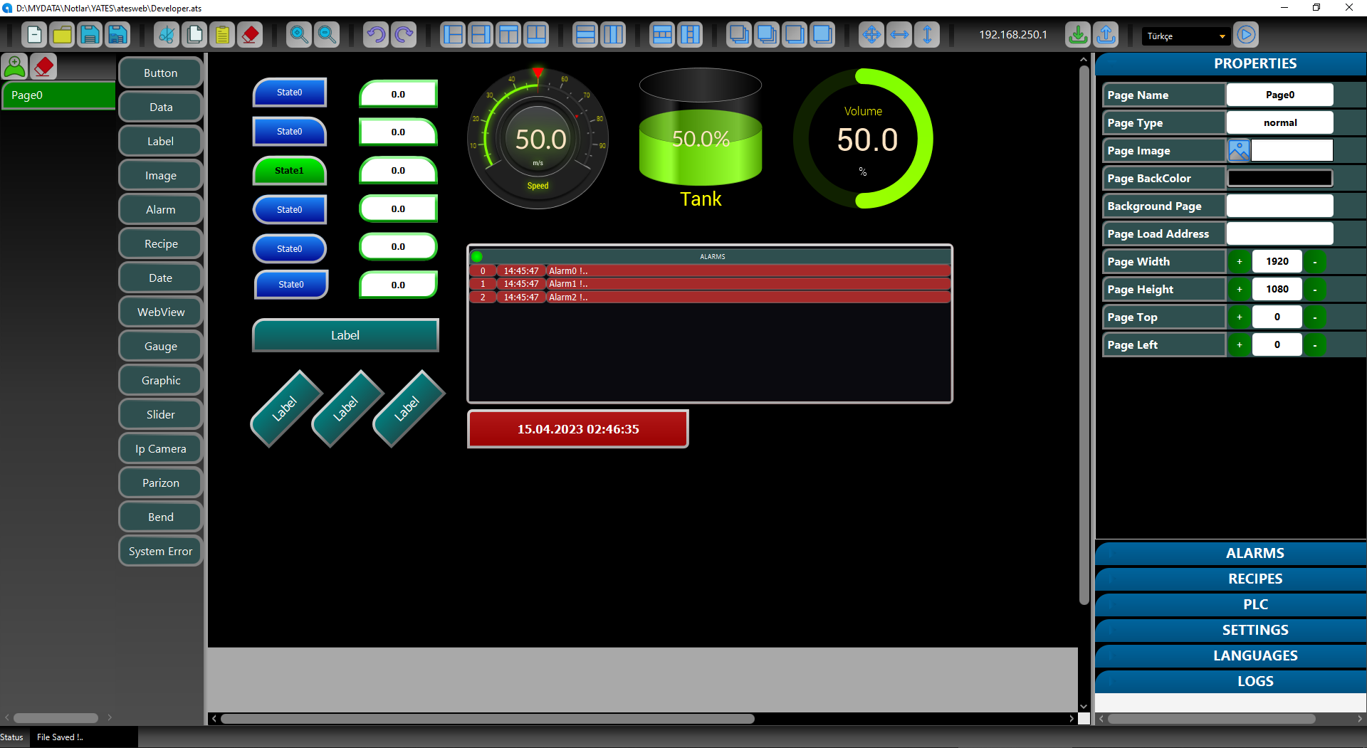 AHMI DEVELOPER & RUNTIME yazılımları Ateş Otomasyon Elektronik Yazılım tarafından geliştirilmiştir. Bilgisayar ve PLC ile haberleşerek PC’nin bir HMI olarak kullanılmasını sağlamaktadır.